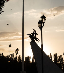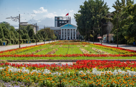 Bischkek ist die Hauptstadt von Kirgistan und liegt am Rand der weiten Tschüi-Ebene. Breite Straßen, große Plätze und viele Grünanlagen prägen das Stadtbild – ein Erbe der sowjetischen Stadtplanung.