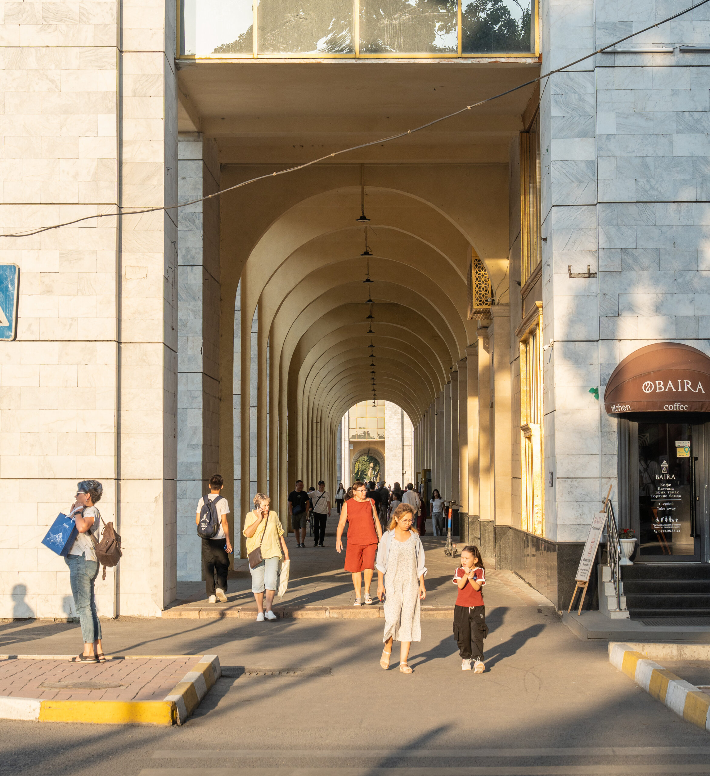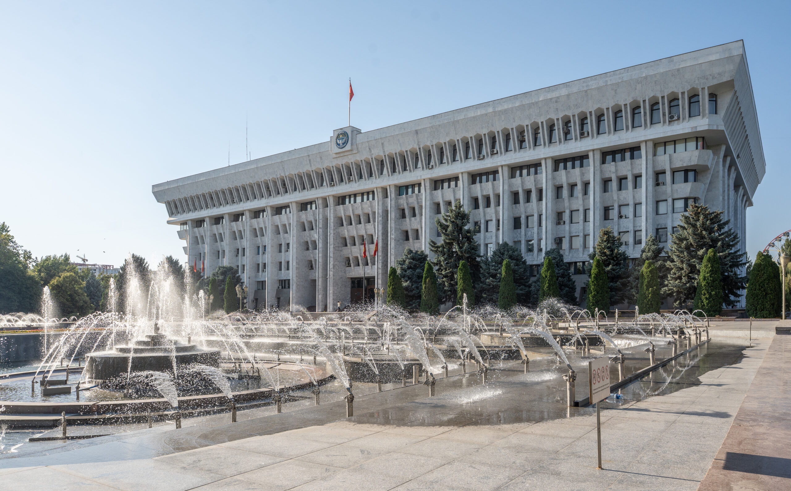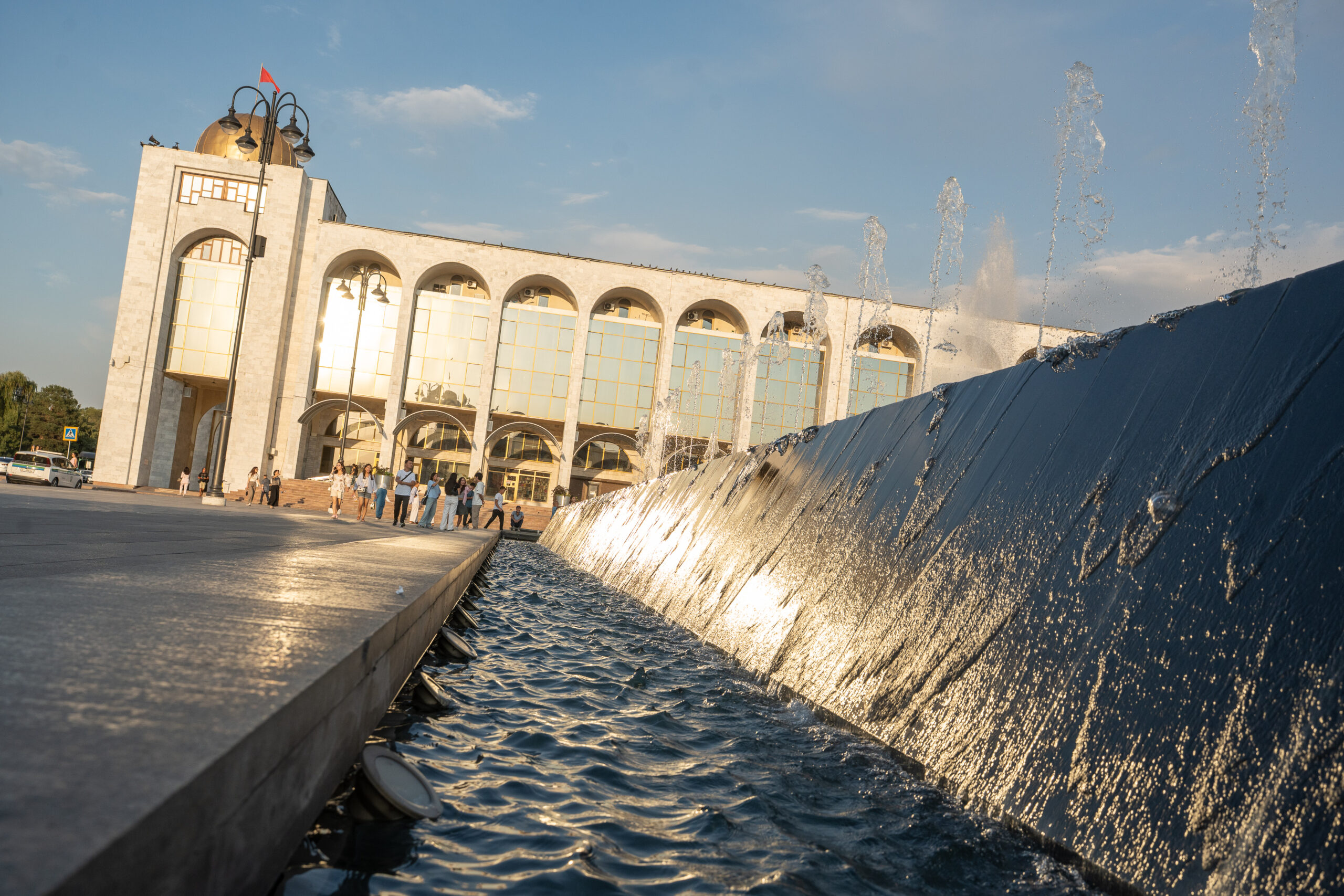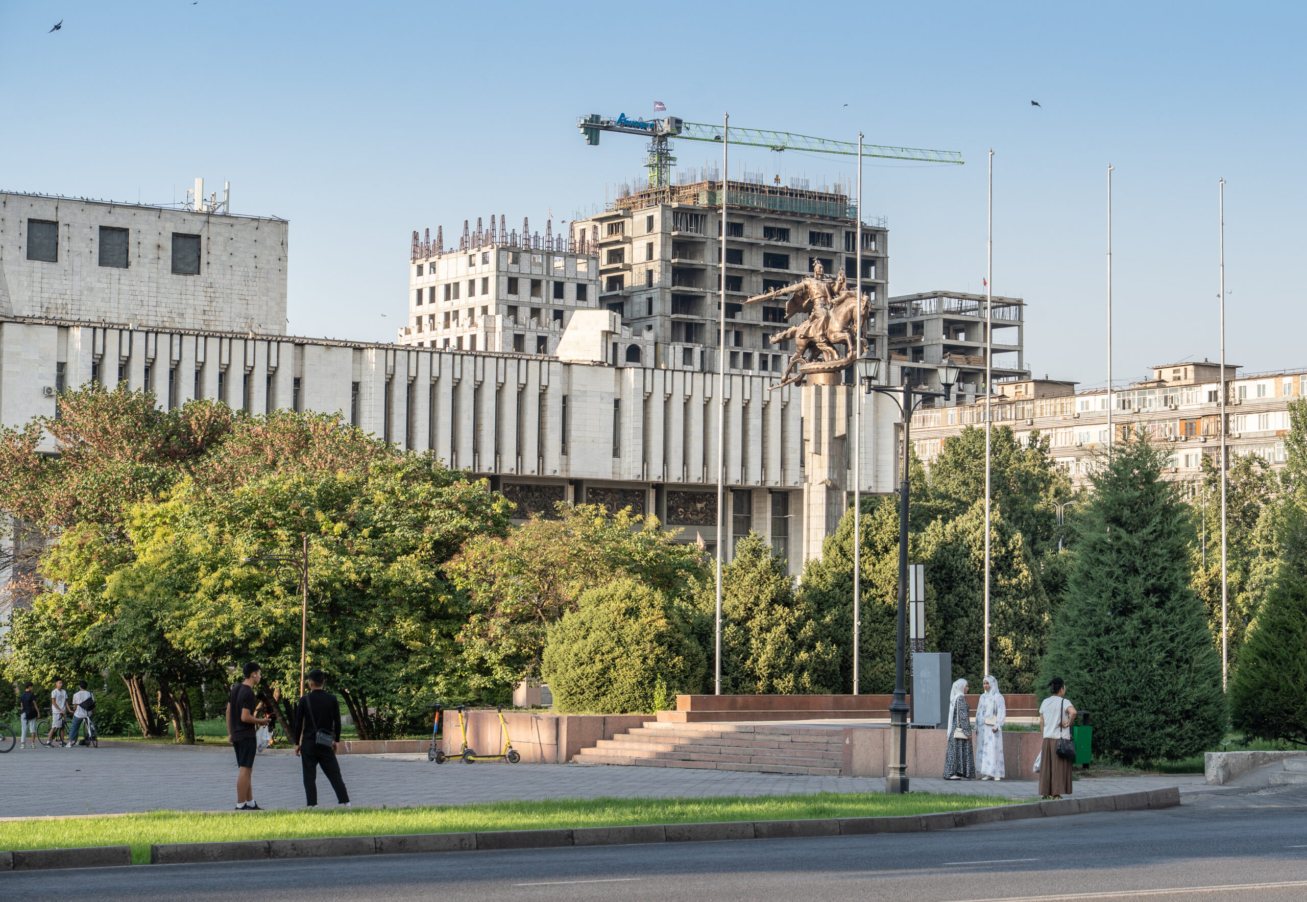 Zahlreiche Verwaltungsgebäude und Wohnblocks stammen aus der Zeit der Sowjetunion und zeigen typische Formen der sowjetischen Architektur. Gleichzeitig verändert sich die Stadt sichtbar: neue Wohnhäuser, Cafés und moderne Gebäude entstehen und geben Bischkek ein zunehmend junges und dynamisches Erscheinungsbild. Im Süden bilden die Berge des Tian Shan die beeindruckende Kulisse der Stadt.