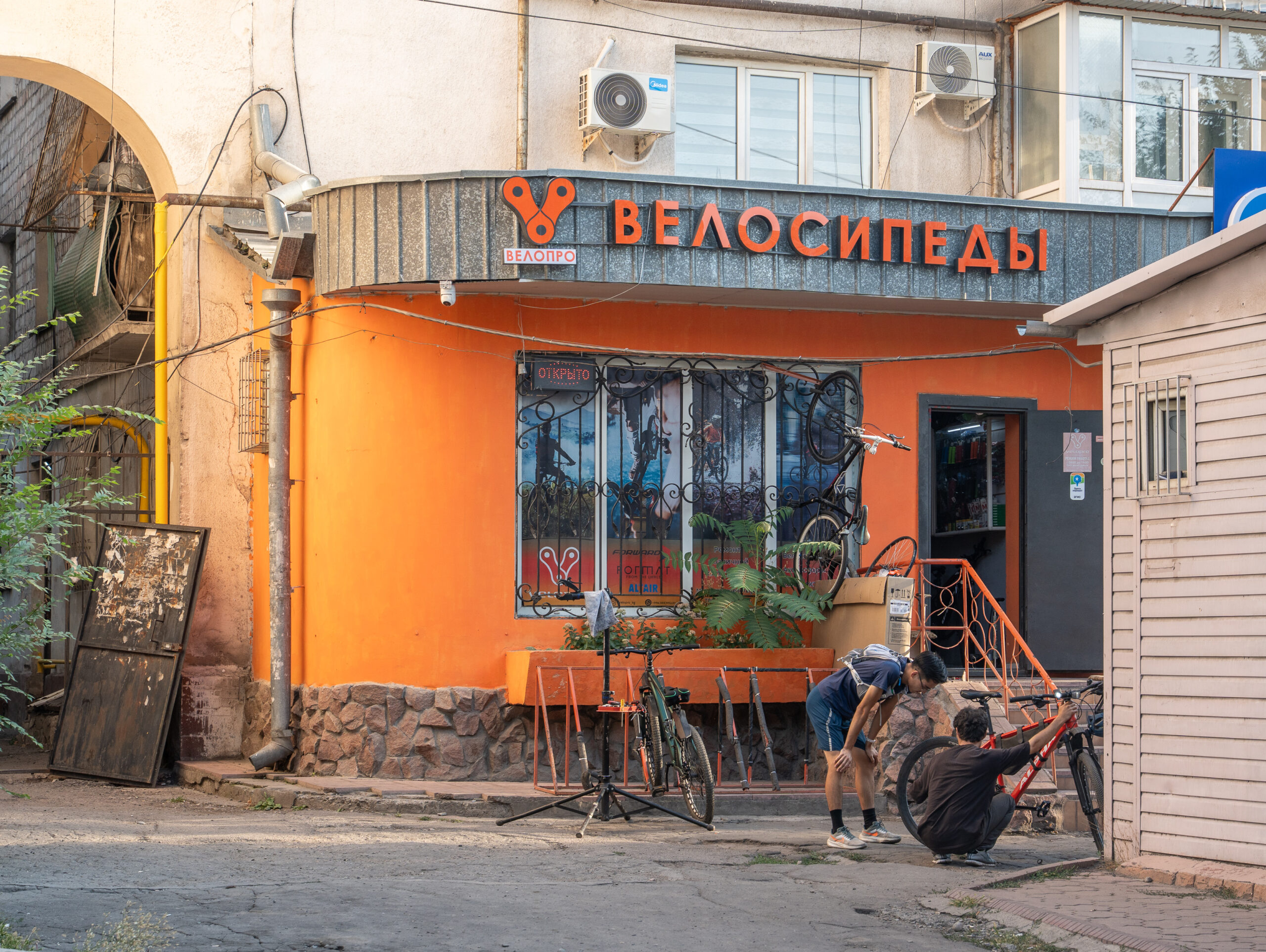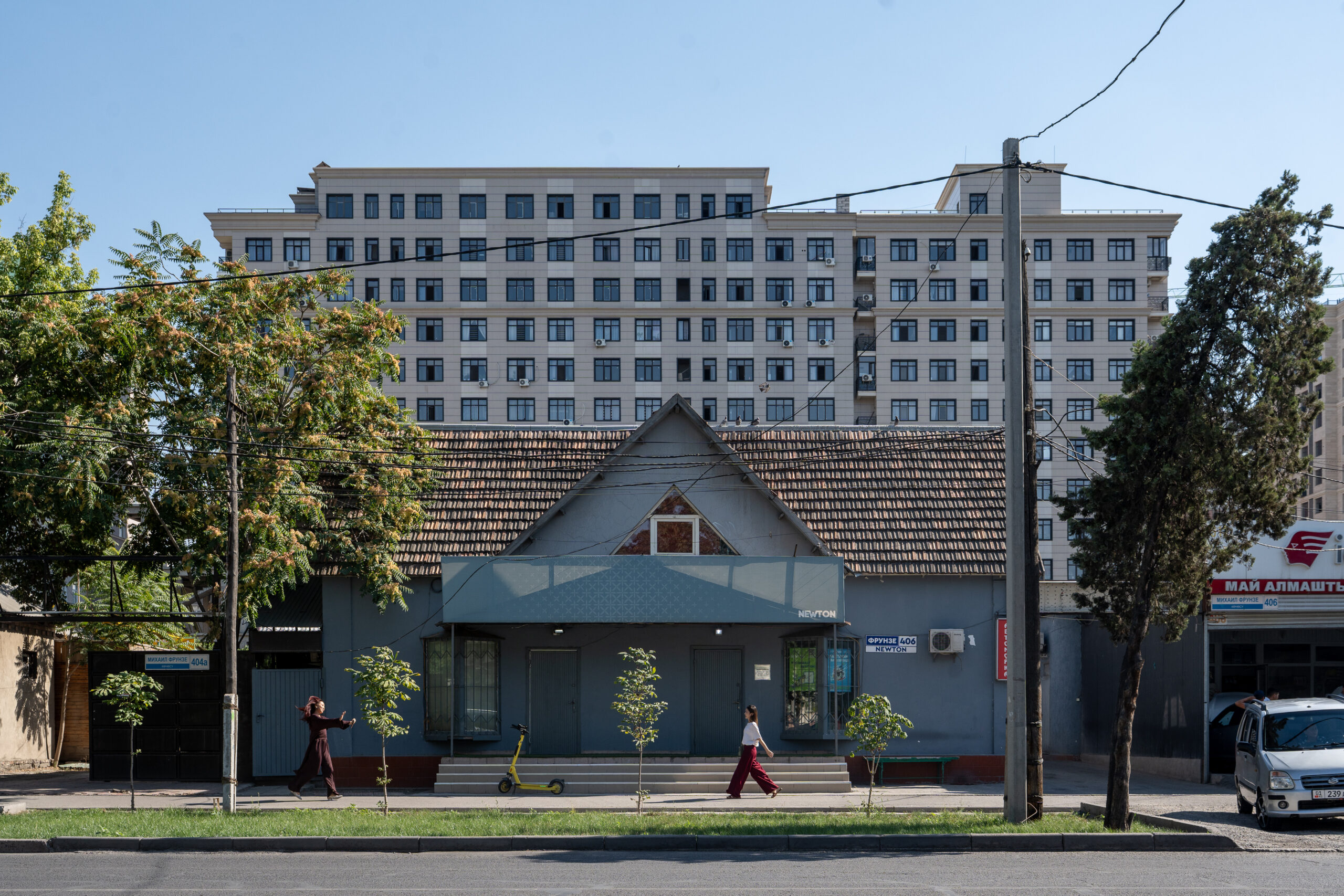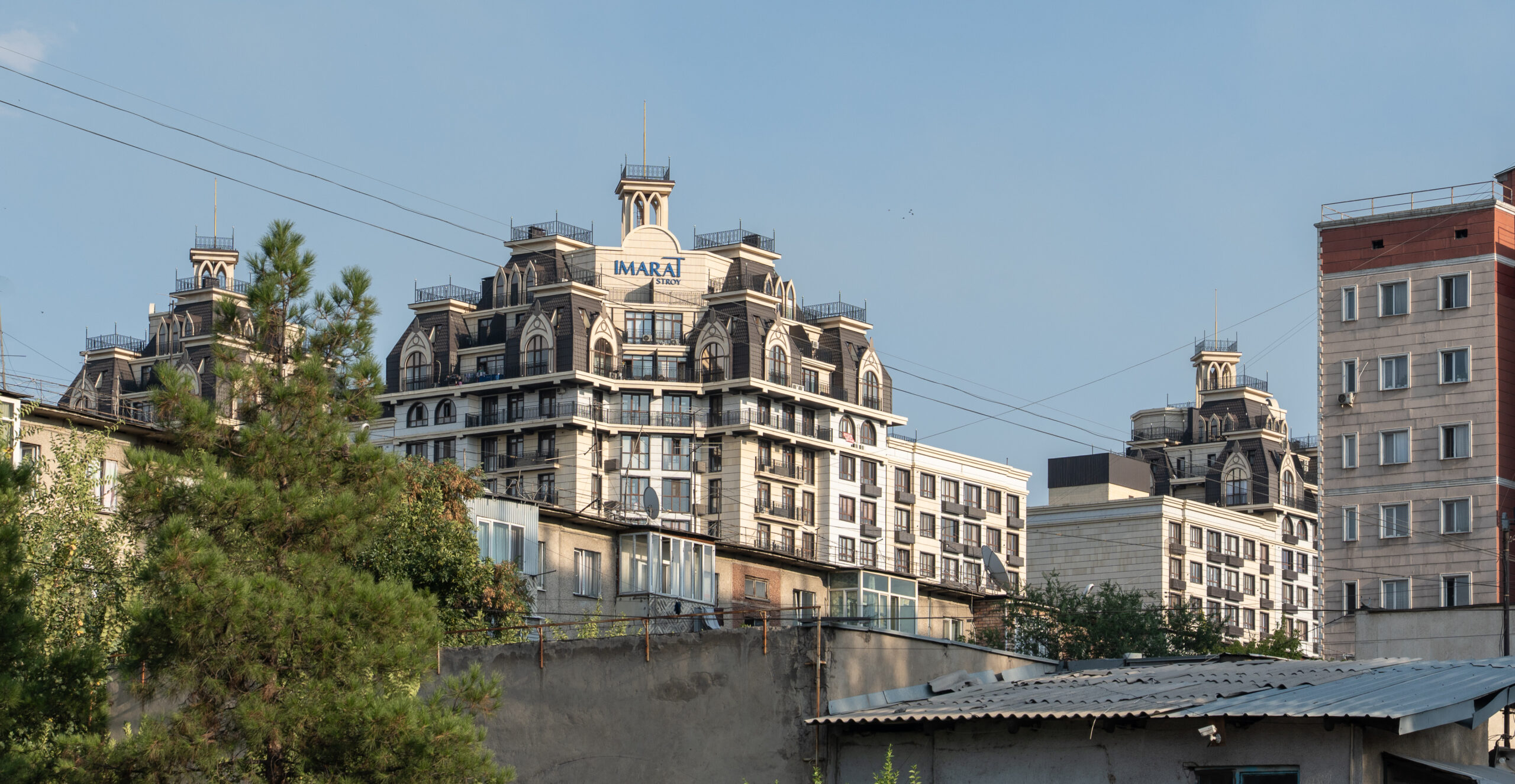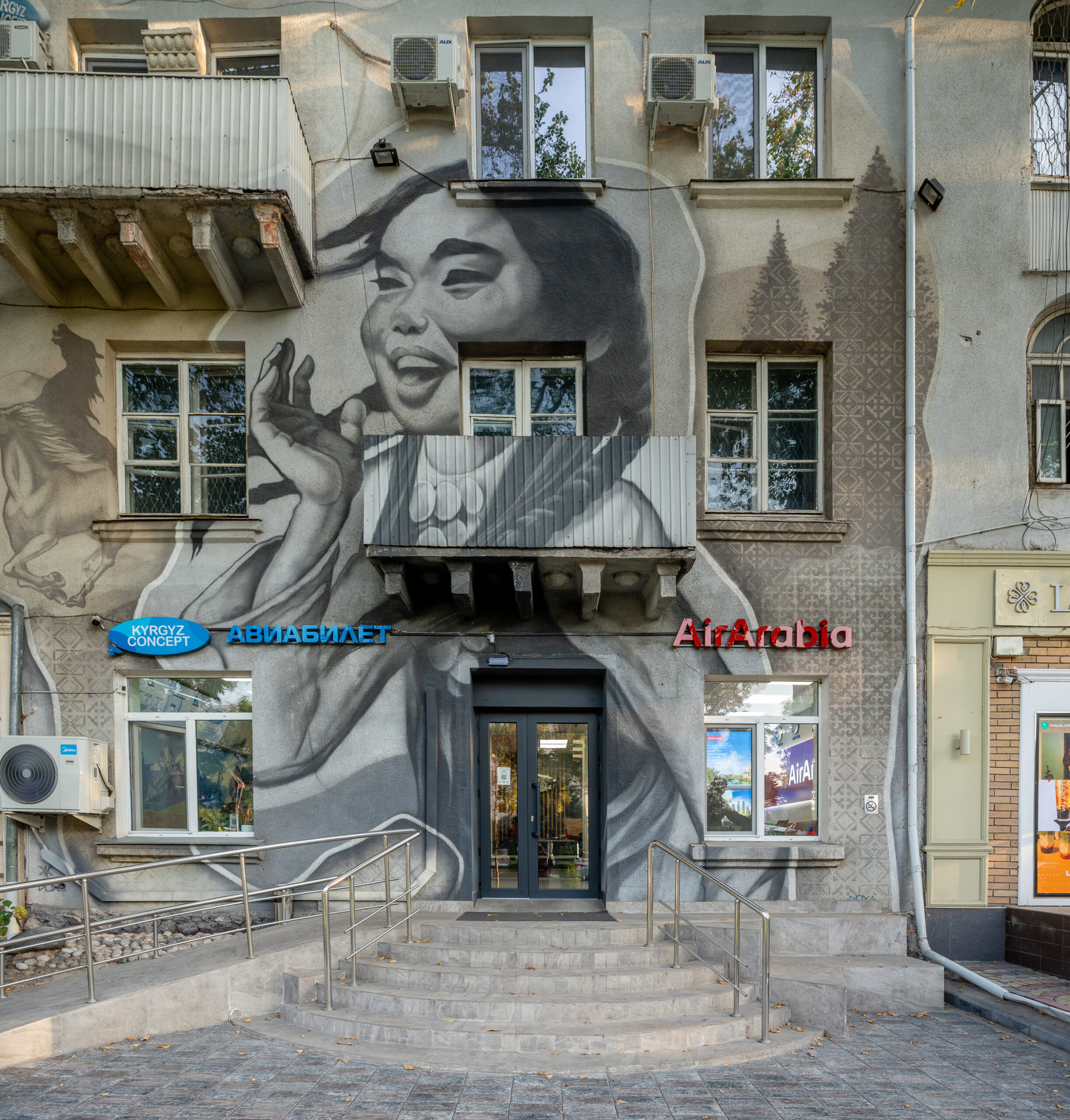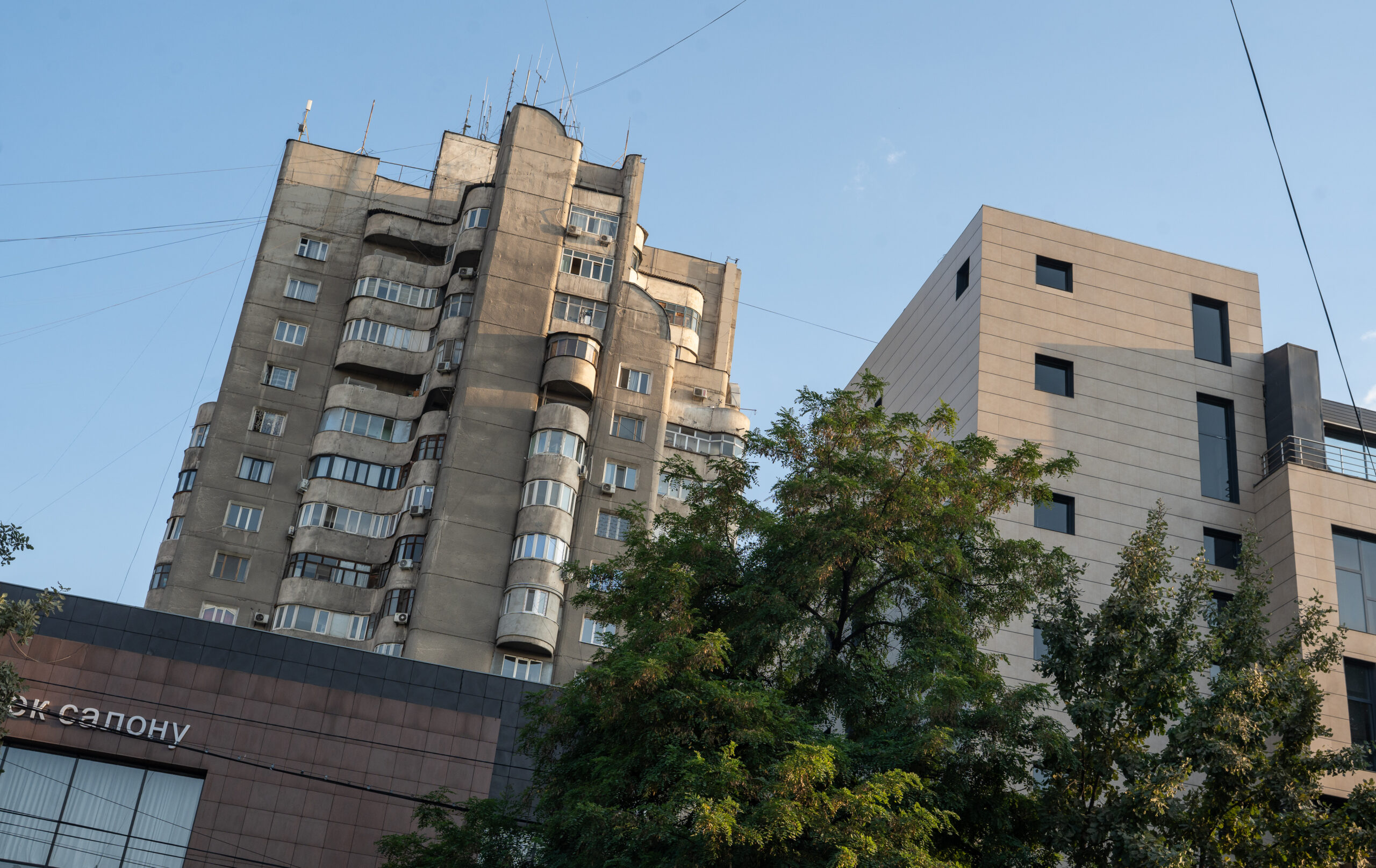 Zahlreiche Verwaltungsgebäude und Wohnblocks stammen aus der Zeit der Sowjetunion und zeigen typische Formen der sowjetischen Architektur. Gleichzeitig verändert sich die Stadt sichtbar: neue Wohnhäuser, Cafés und moderne Gebäude entstehen und geben Bischkek ein zunehmend junges und dynamisches Erscheinungsbild. Im Süden bilden die Berge des Tian Shan die beeindruckende Kulisse der Stadt.