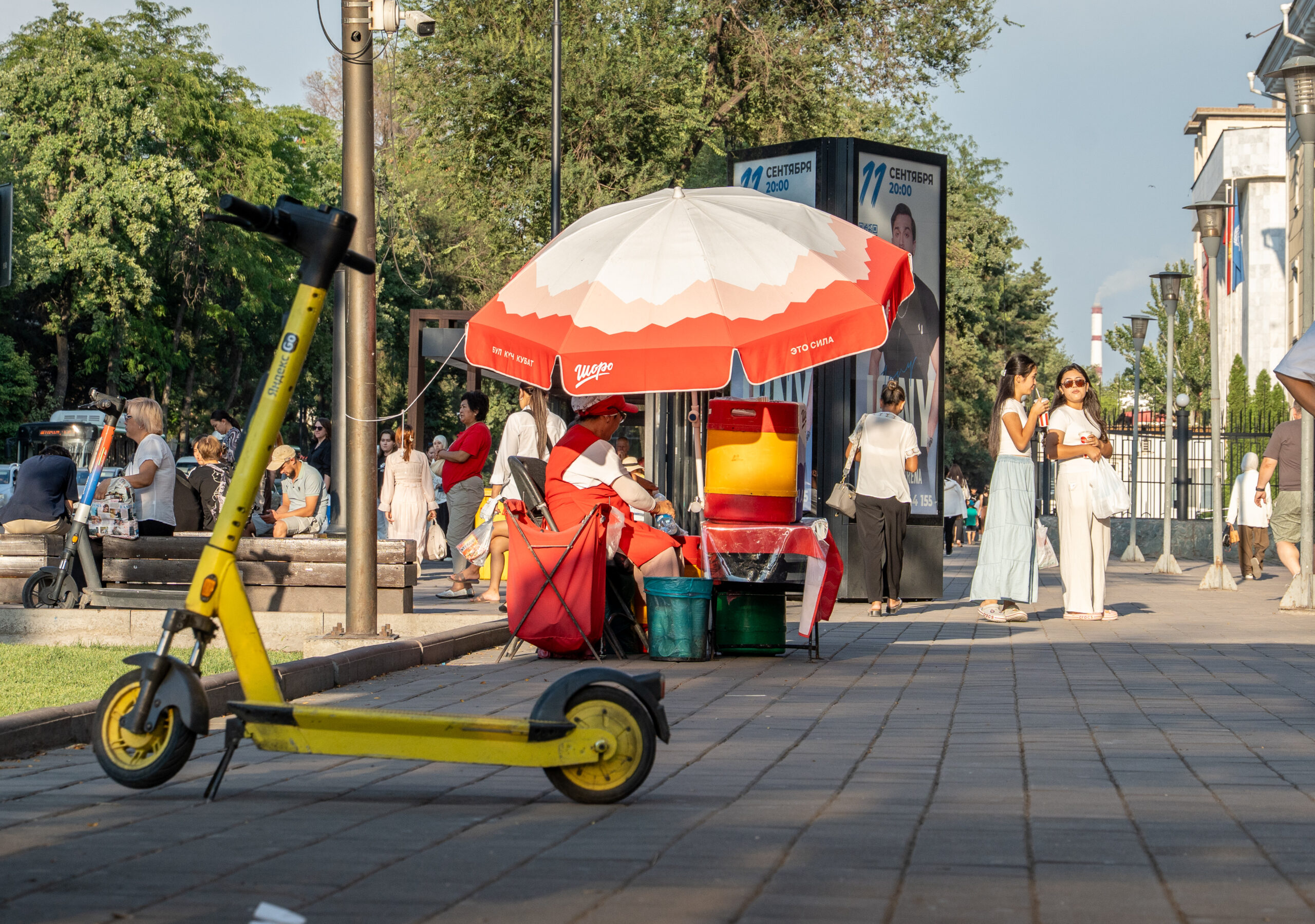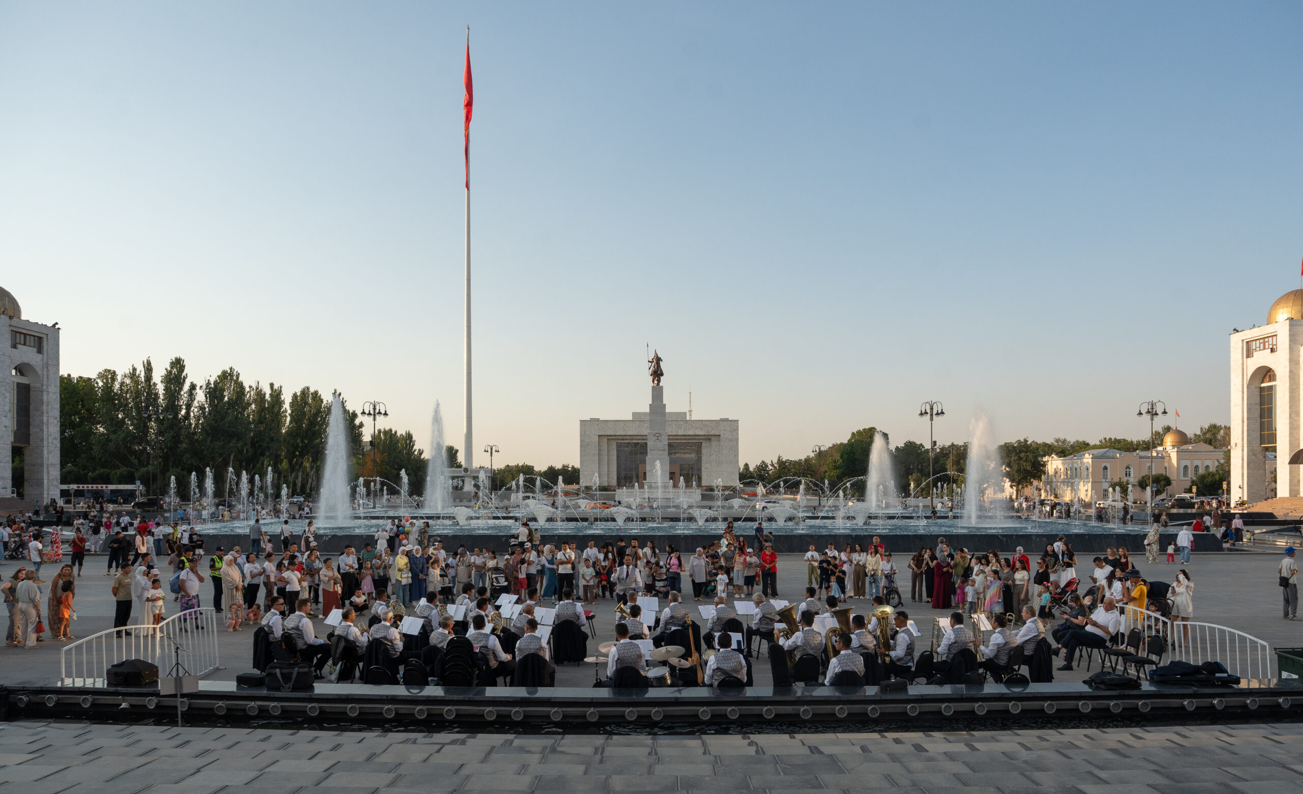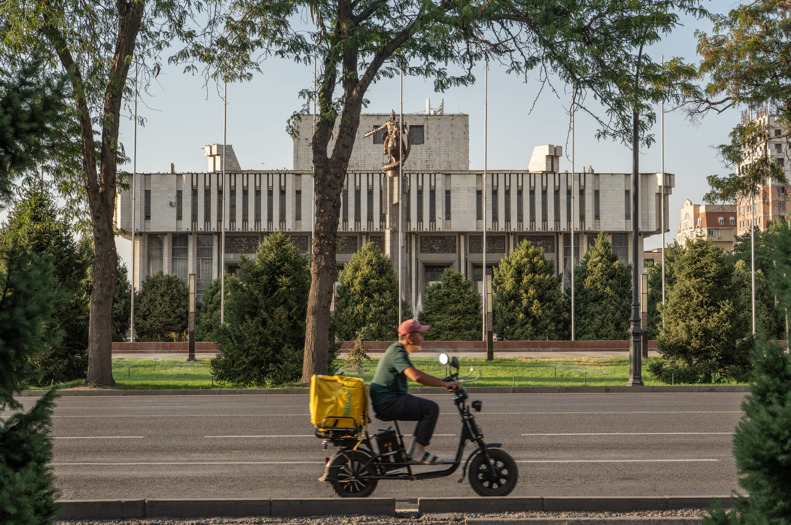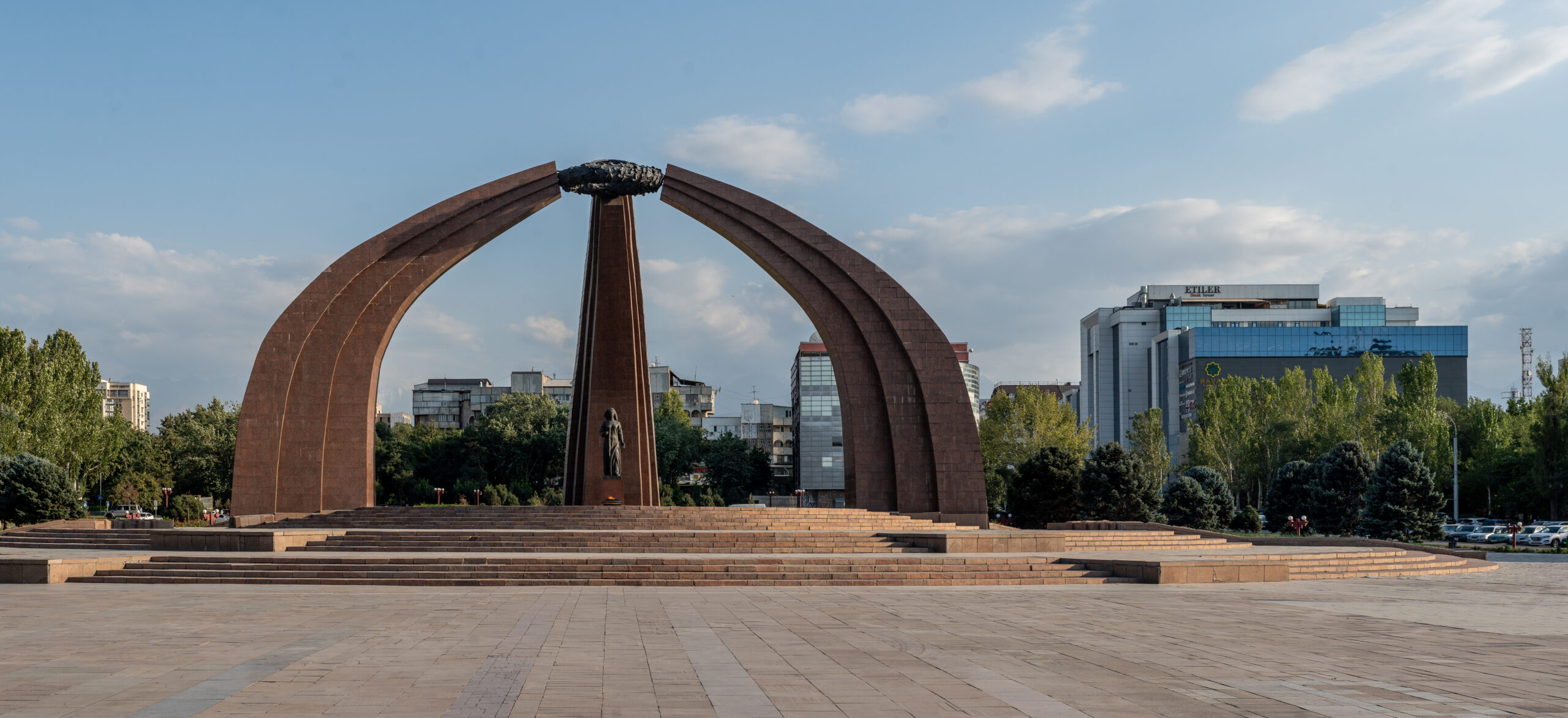 Bischkek ist die Hauptstadt von Kirgistan und liegt am Rand der weiten Tschüi-Ebene. Breite Straßen, große Plätze und viele Grünanlagen prägen das Stadtbild – ein Erbe der sowjetischen Stadtplanung.
