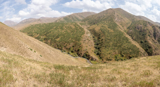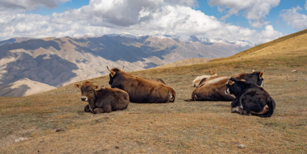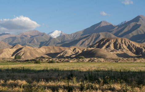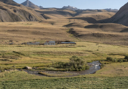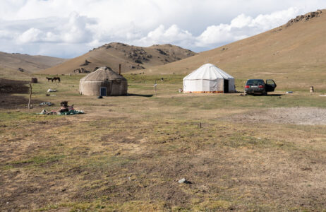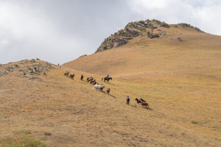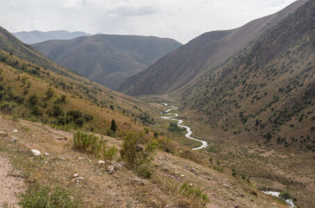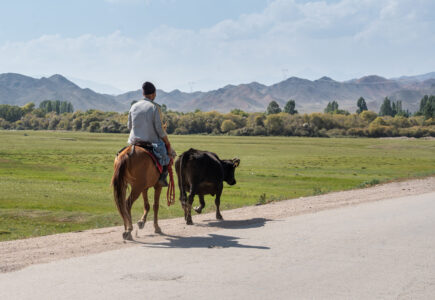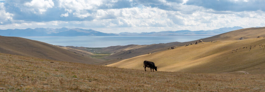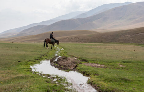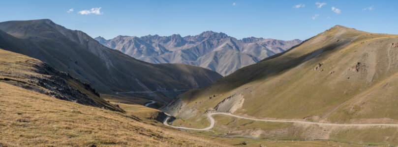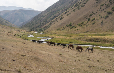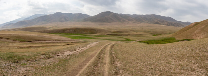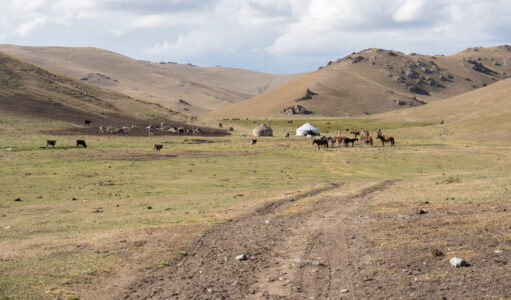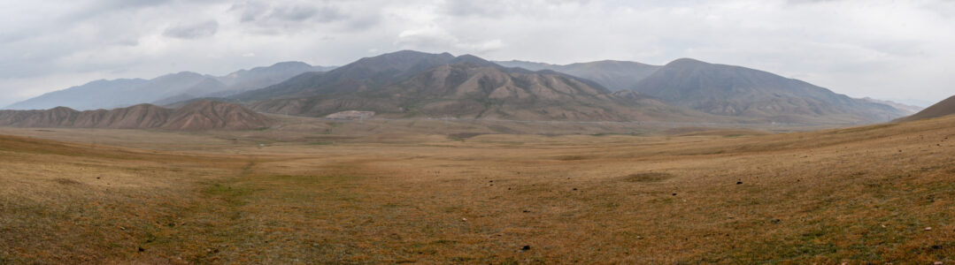 Zentralkirgistan ist eine weite Hochlandregion, die von offenen Hochebenen, sanften Bergketten und großen Sommerweiden geprägt wird. Viele Gebiete liegen auf über 2.000 Metern Höhe und werden im Sommer von Nomaden mit ihren Herden genutzt.