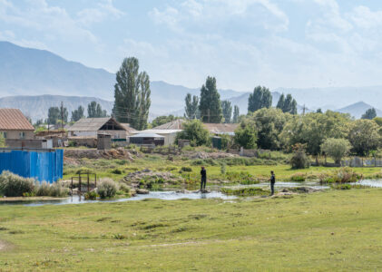 Kochkor ist das wichtigste Dorf der Region und ein Ausgangspunkt für Reisen in das Hochland. Von hier führen Wege und Pisten über Pässe wie den Kyzart-Pass hinauf zum Songköl und weiter in abgelegene Täler und Hochweiden des zentralen Tian-Shan.